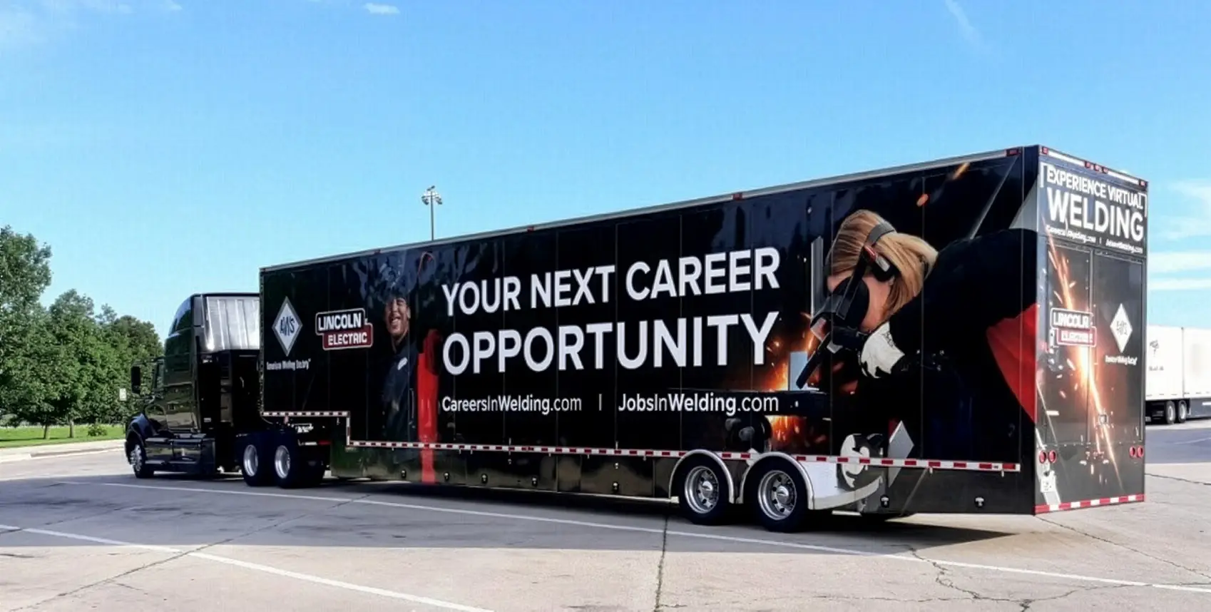 You can step aboard a 53-foot trailer to test your welding skills on Lincoln Electric's VRTEX 360 virtual simulator and explore welding careers.